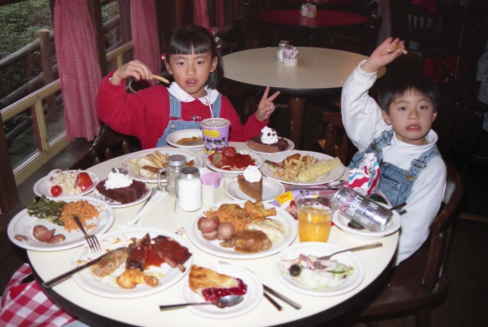島から戻って4時半の昼食は食べ放題のビュフェで皆満腹。スープ、サラダバー、スパゲティー、チキン、スペアリブ、魚、その他いろいろ肉・野菜、コーン、ライス、ケーキ4種類、ビール、コーヒー、ミルク。タ食用にこっそりとかなりの量、タッパーやビニール袋に入れてテイクアウトした。