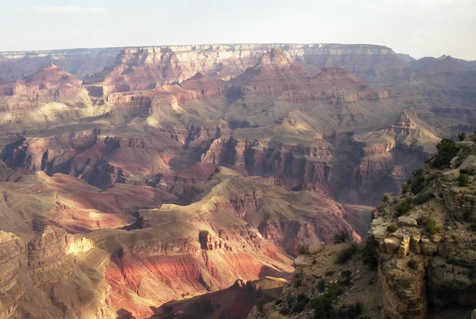 次は「モーラン・ポイント」からのグランドキャニオンです。朝日が大渓谷の全体を照らしていて、その凸凹している様子がよく分かります。