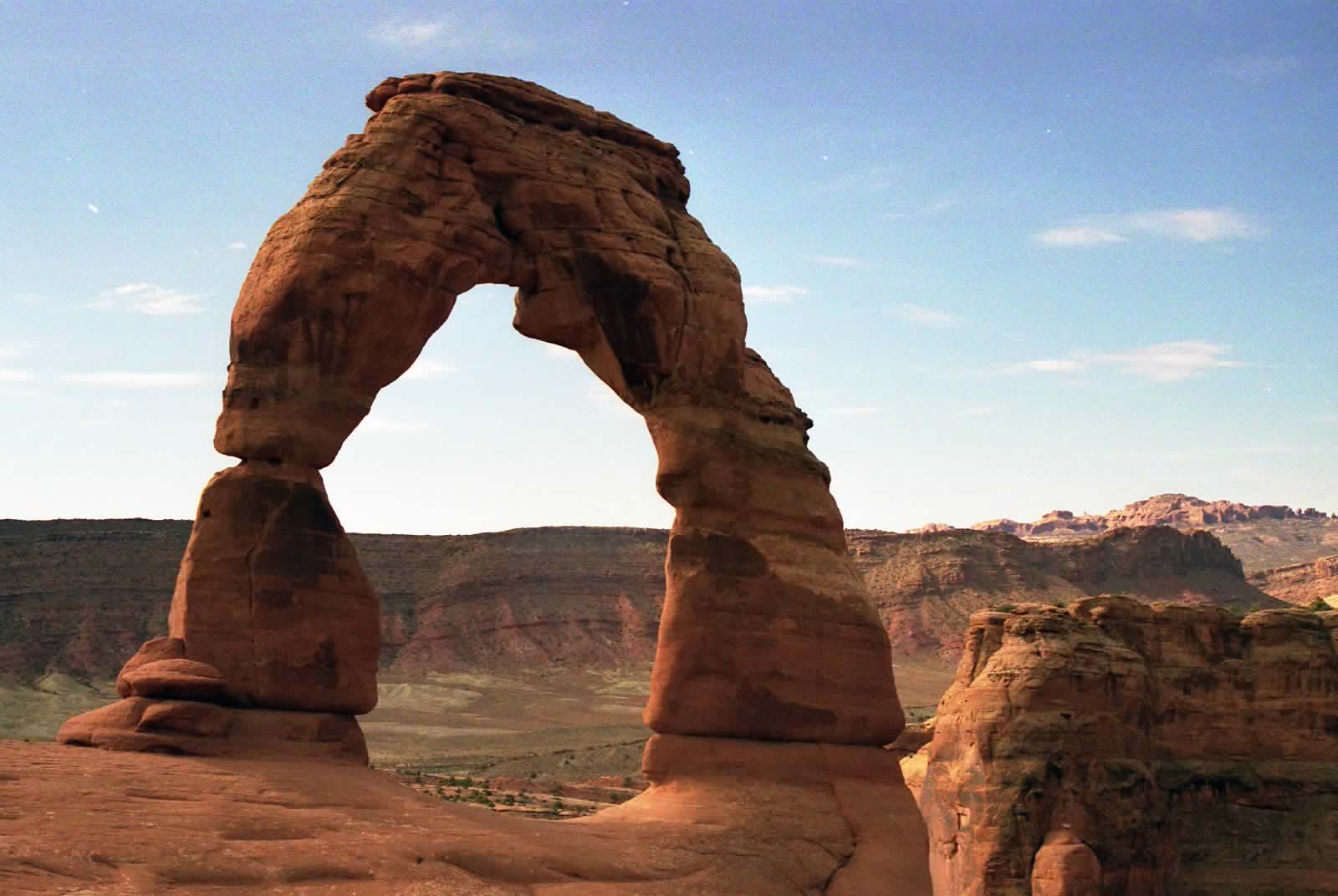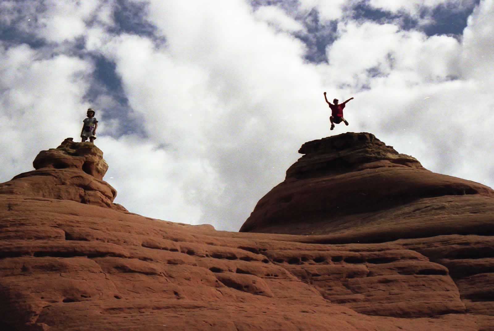 朝食後、まず「サンド・デューン・アーチ」まで歩いて行きました。ここはアーチに行くまでの道中がとても面白く、大岩の割れ目の中の狭い所を抜けて、フワフワの砂の上を歩いて、子供達は途中から砂の横の岩に登って岩の上を楽しそうに歩いていました。