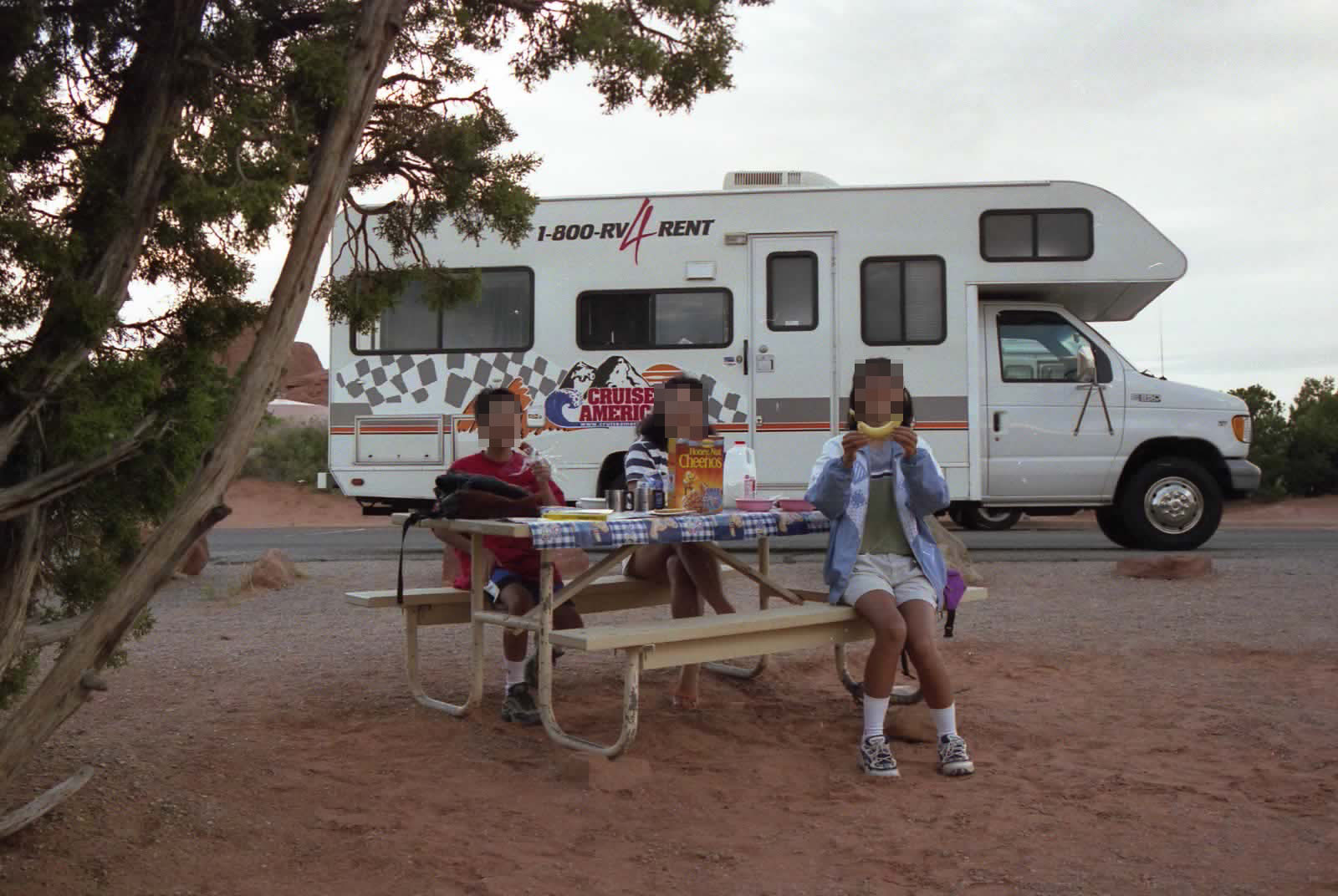 アーチ(穴の空いた岩)だらけのアーチーズ国立公園内のキャンプ場で迎えた朝、6時半に起きてすぐ、子供達と近くに見えている山に登る散歩にでかけました。
