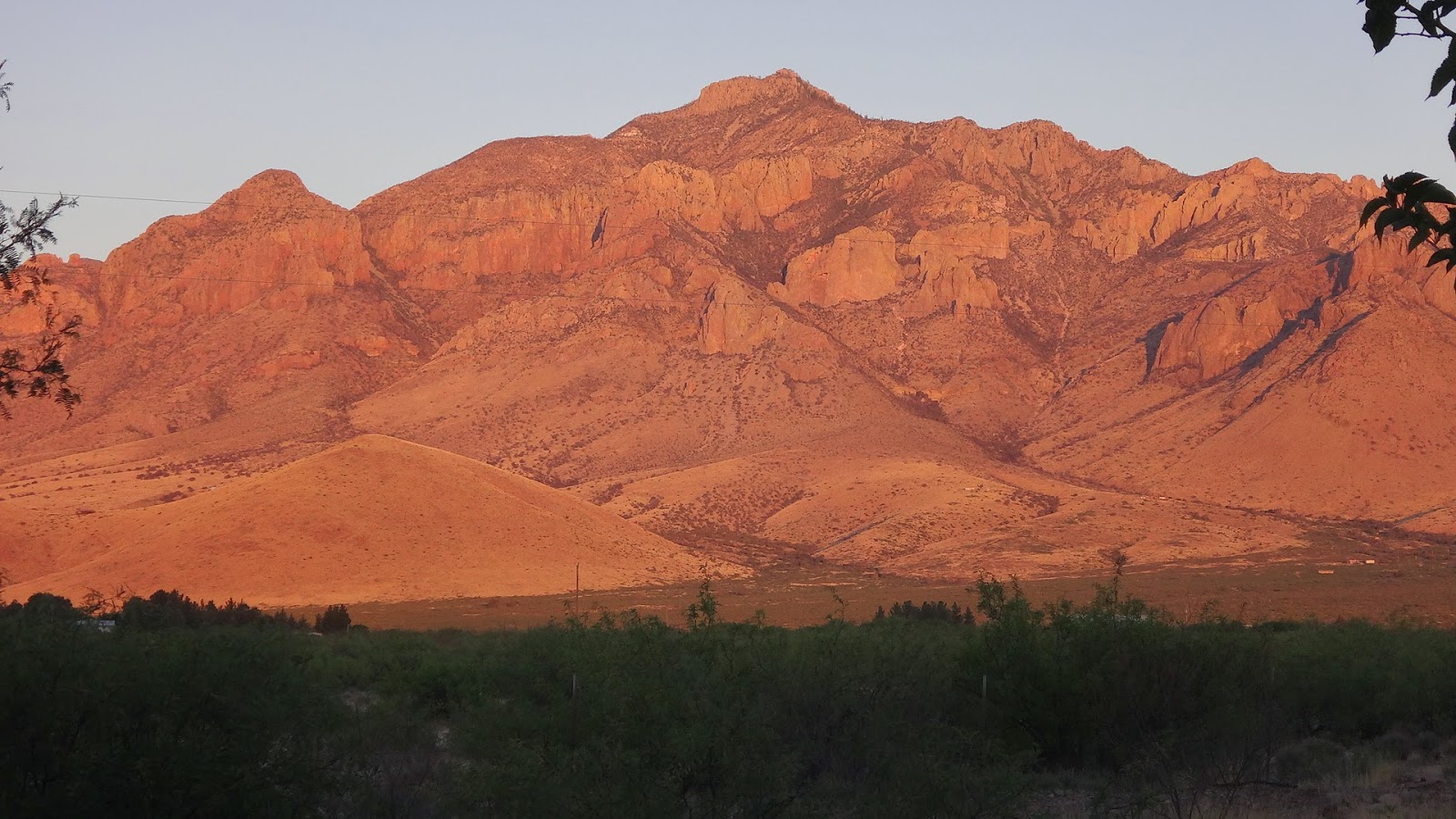 目が覚めるとチリカワの山が朝焼けに染まっています。アリゾナ州の南東の端っこの小さな村ポータル。ハチドリが渡りの途中に立ち寄るバードウォッチングの聖地で3泊します。