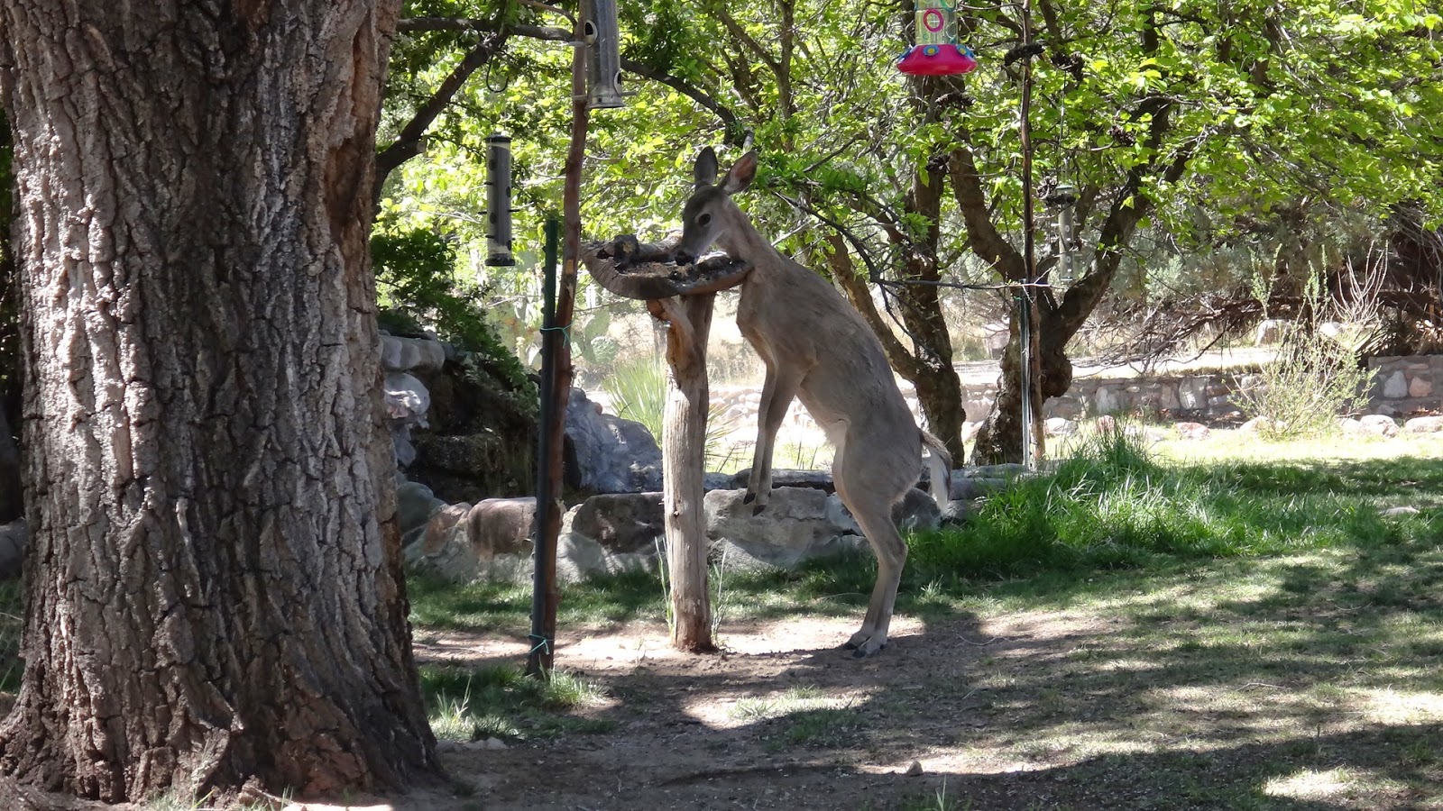 鳥の餌台には、野生のシカまでやって来ました。