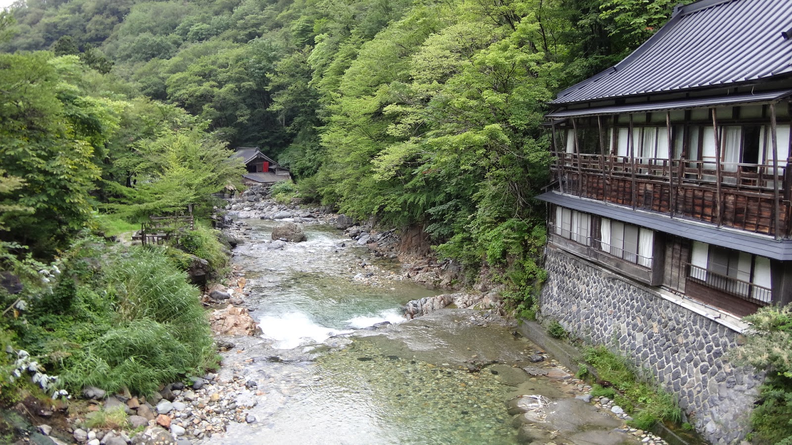 水上家族旅行の最終日は朝から雨でしたが、アウトドアは満喫したので、景色の良い露天風呂のある温泉にでも行こうと思って調べると、近くに「テルマエ・ロマエII」のロケにも使われた宝川温泉というのがありました。行ってみると、広大な敷地の一軒宿で、写真の川の先の方に、川をはさんで合計4カ所の広々とした大露天風呂がありました。
