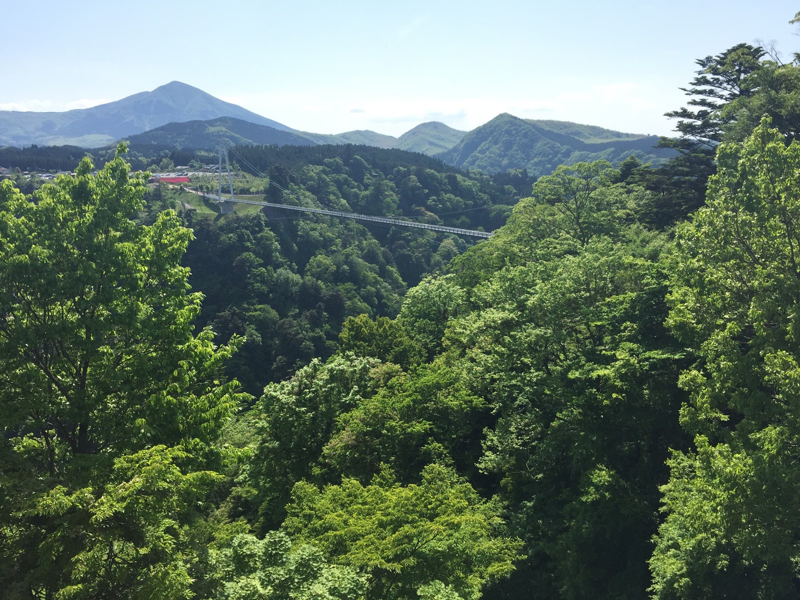 阿蘇の素晴らしい景色を満喫した後、やまなみハイウェイをドライブして久住に向かいました。目的地は、長さ(390m)と高さ(193m)で日本一の九重”夢”大吊橋です。