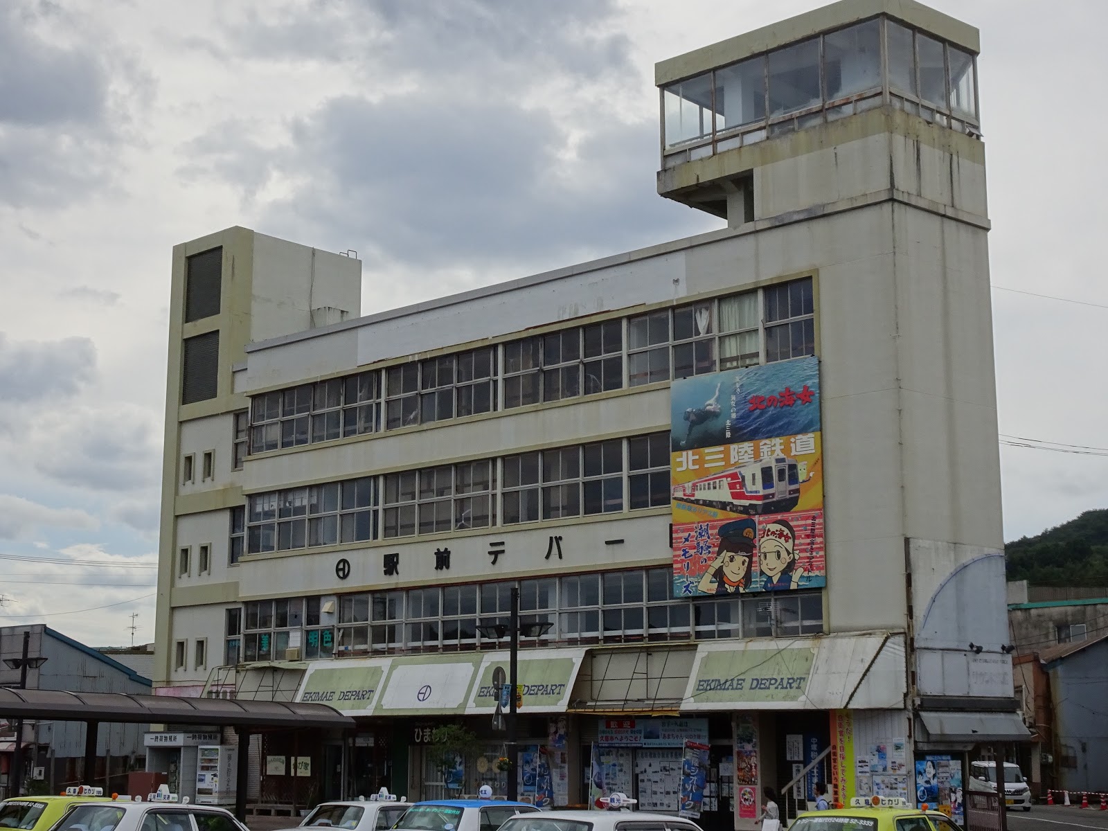 駅前には、ドラマで北三陸観光協会が入っていたビルがあり、掲げられた大看板もそのままです。