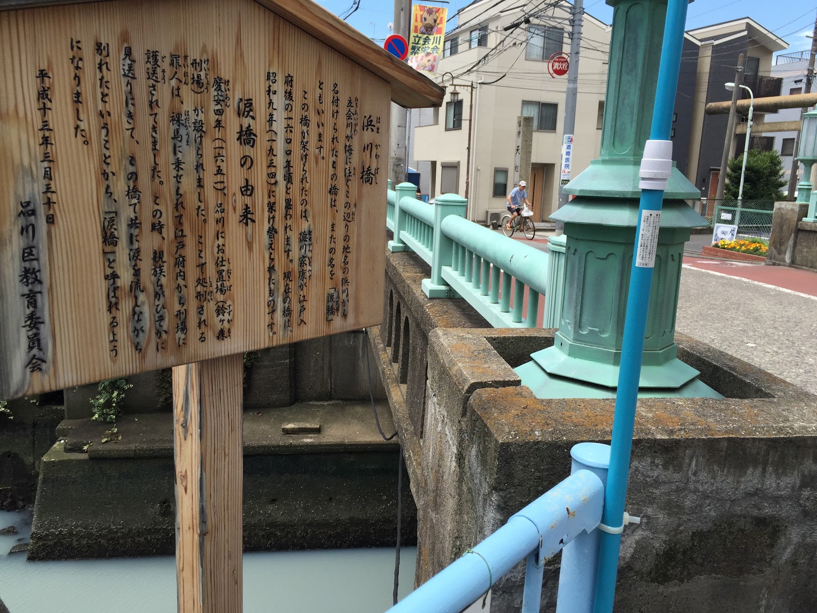 小一時間歩いたところで、浜川橋にやってきました。看板にも書いてありますが、この先の鈴ヶ森刑場で処刑される罪人を家族がこの橋で見送ったことから涙橋とも呼ばれているそうです。