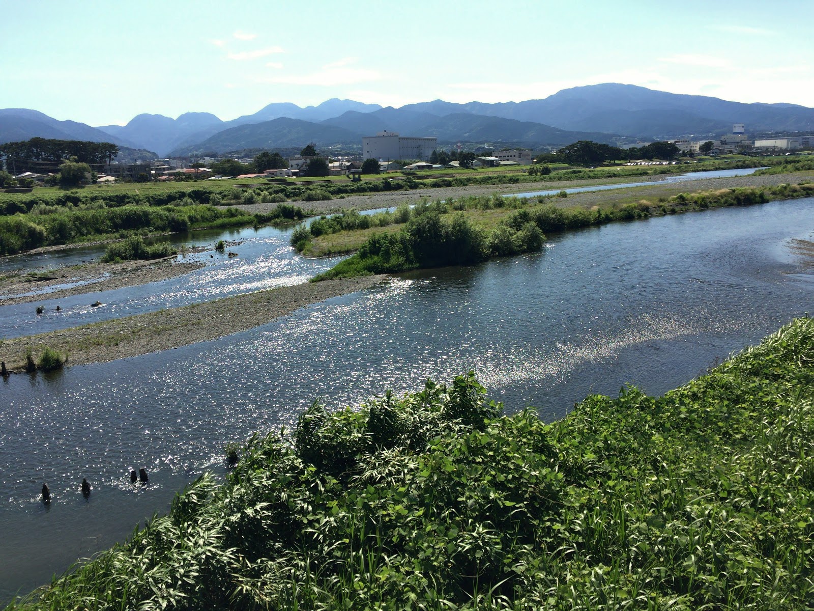 酒匂川を渡る橋からは、段々近づいてきた箱根の山々が一望に見渡せました。水もきれいで、アオサギやコサギもいました。