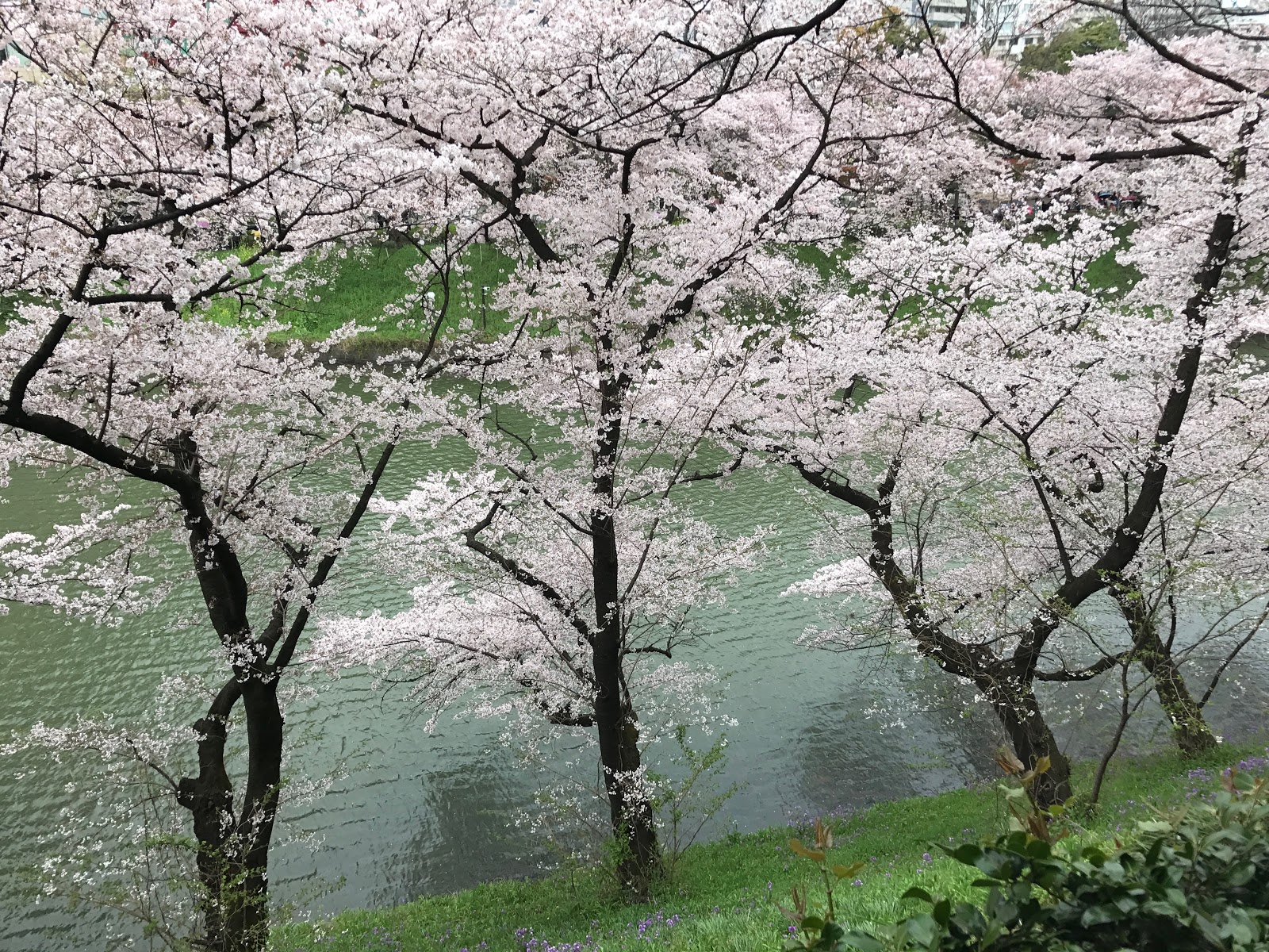 千鳥ヶ淵の桜は、お堀の皇居側の尾根道のような遊歩道を初めて歩きながら眺めました。見下ろすこちら側の桜と対岸の桜並木が重なって、桜が大合唱しているようです。
