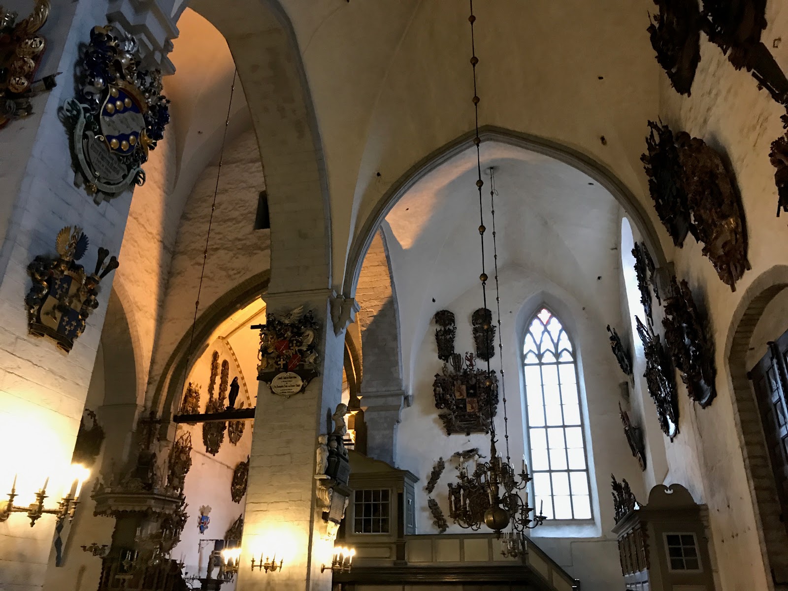 聖母マリア教会(大聖堂)は、エストニア本土では最古の教会だそうで、壁に掛けられたたくさんの紋章の1つ1つが大きく立派でした。タリンで見た教会の中では、ここが一番良かったし、そもそもこのように紋章だらけな教会は見たことが無かったので、面白かったです。
