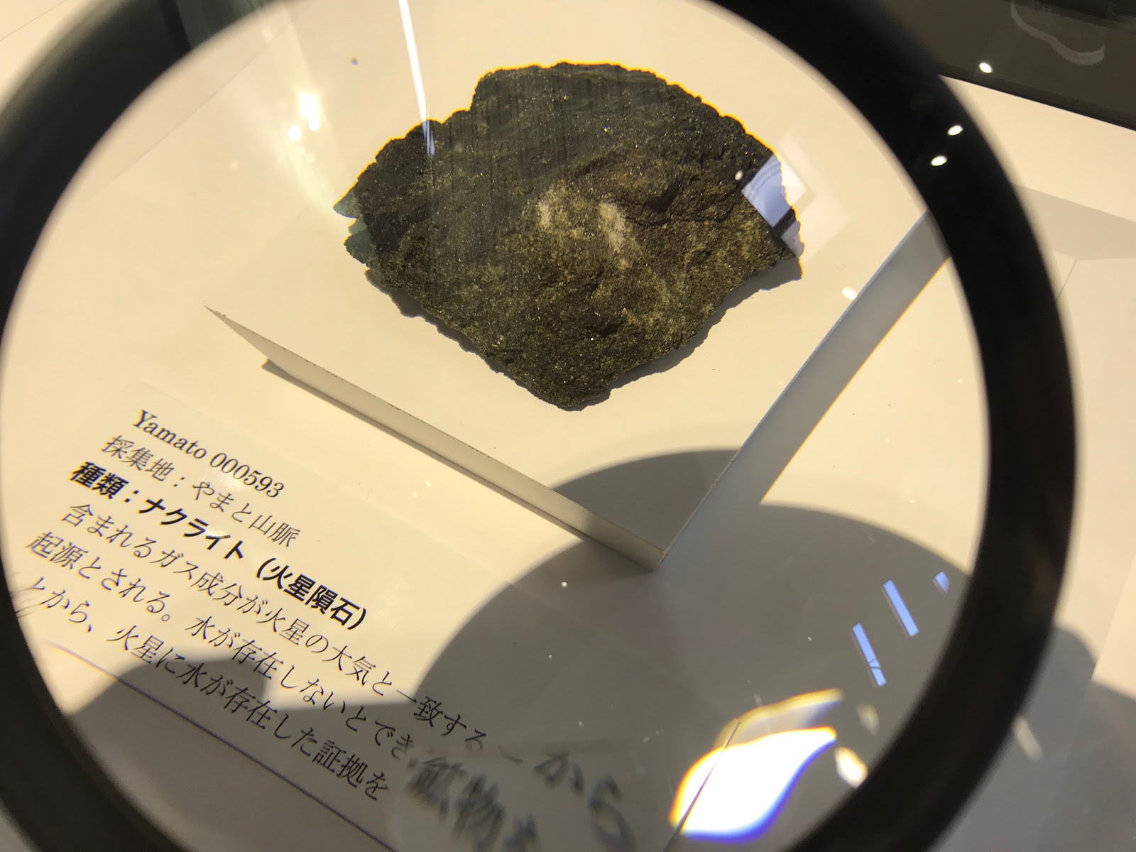 ランサムにつながる展示その2は、「火星」の石(と思われるもの)です。これにはびっくりしました。そのうちに火星探査機が火星の石を地球に持ち帰ってくることがあれば、それと比較することで本当に火星の石なのかどうかが判明して、もし本当であれば、このような場所にポンと展示しておけないだろうから、見るなら今のうちです、というようなガイドの方の説明が面白かったです。