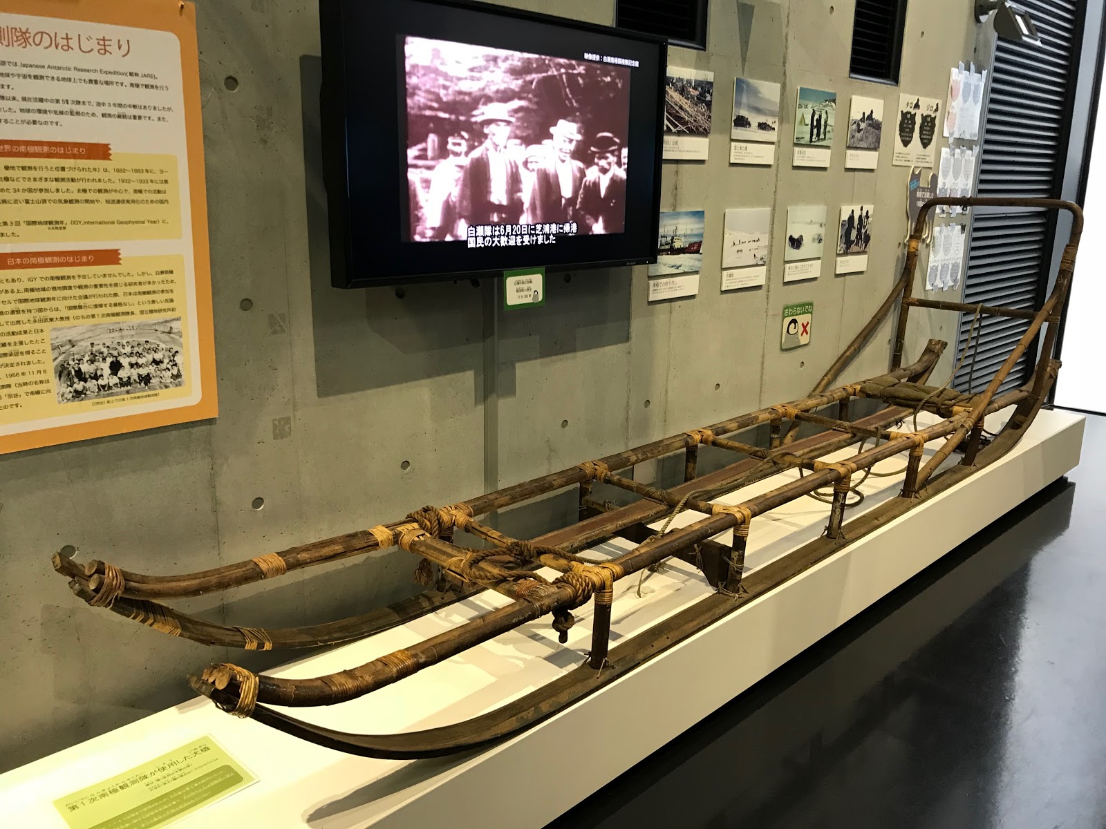 ランサムにつながる展示その1は、「犬ぞり」です。日本の第1次南極観測隊が使用したものを見ることができました。