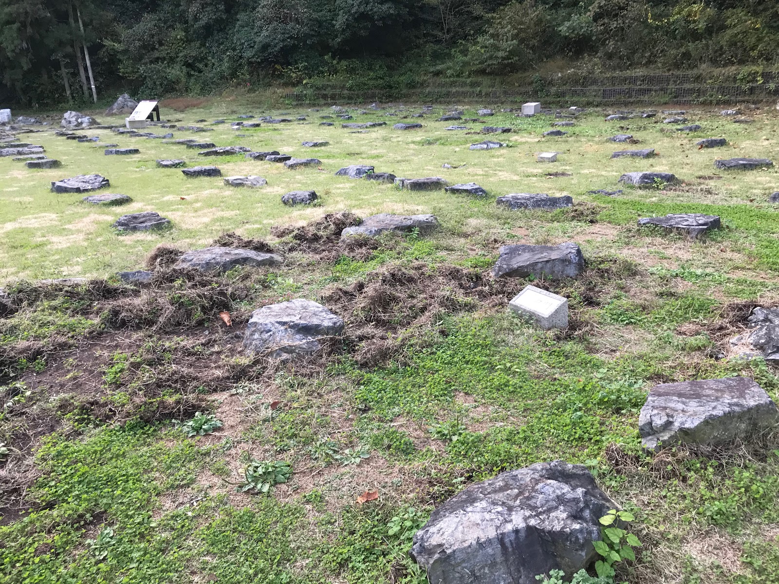 山を降りて、八王子城跡のもう1つの見どころである御主殿があった所に行きました。モグラが地面をあちこち掘り返してしまったそうです。ここから山頂の本丸までの近道もあるようですが、ガイドと一緒でないと通れないみたいです。