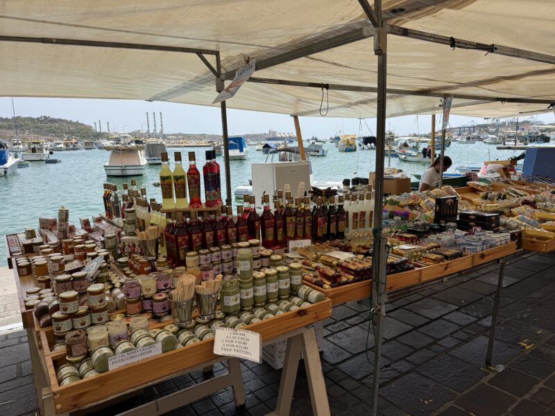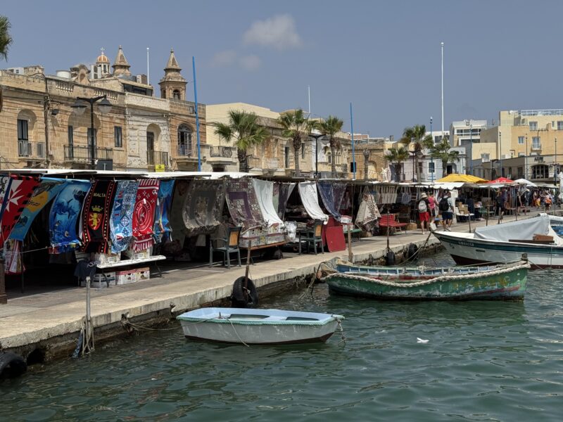 クルーズターミナルを出た所で12時ちょうどに車でピックアップしてもらい、バレッタから南東方向へ20分ほどで、マルタ島最大の漁港があるマルサシュロックに着きました。