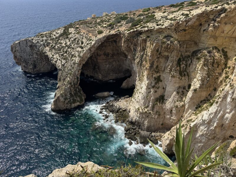 次に訪れたのは、空港のそばを通って西へ20分ほどの青の洞門(ブルーグロット)です。ナポリの近くのカプリ島のが有名ですが、マルタ島にもあるようです。