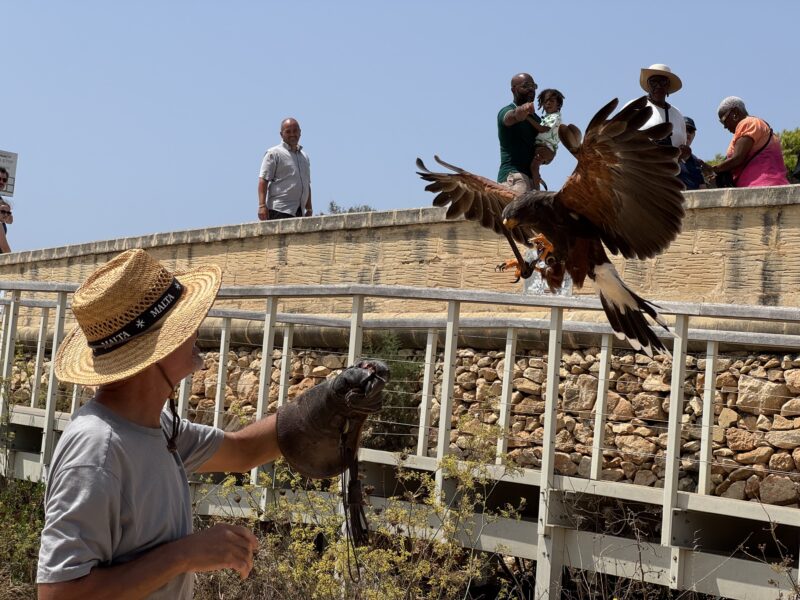 展望台では観光客向けに鷹匠が鷹を操っていました。