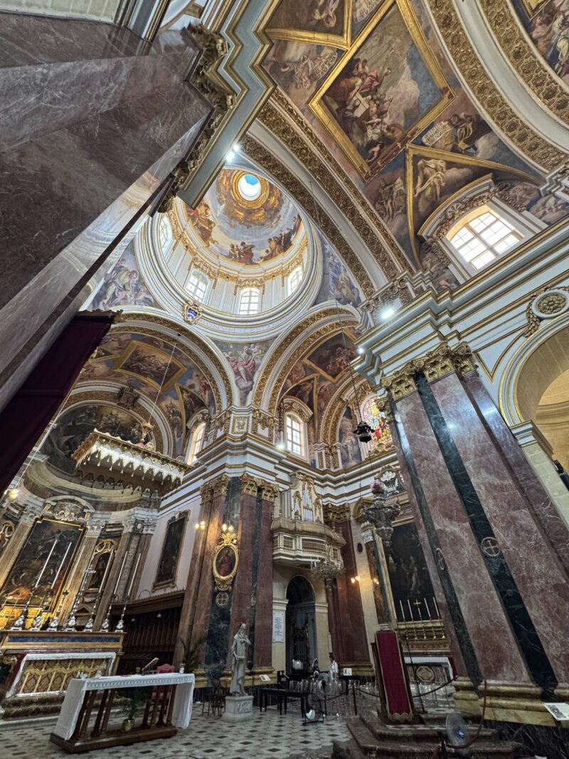 メインストリートの左側にあった聖母マリア受胎告知教会の中をのぞきました。マルタで最も美しいバロック建築と言われています。