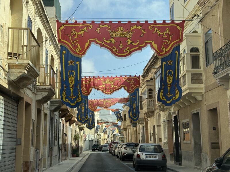 マルタ人はお祭り好きなようで、ちょうどお祭りの日だったいくつかの街では、このように街中がカラフルに装飾されていました。花火もよく打ち上げるのだそうです。