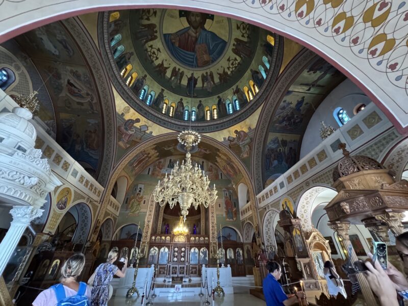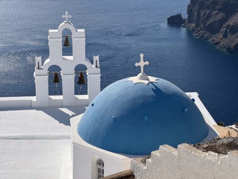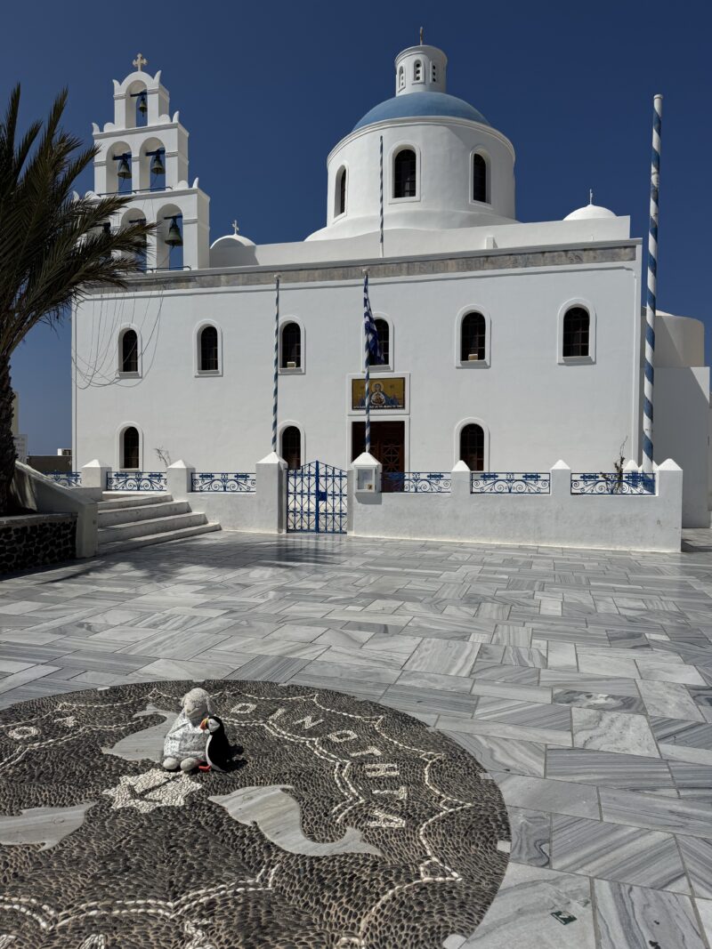 まず、町の中心にあるメインスクエアまで行くと、サントリーニ島のイメージにぴったりな教会がありました。