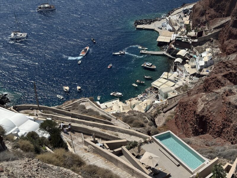 眼下には、イアの港が見えています。ここも港と街を結ぶジグザグの石段の道を行き来するのは大変そうです。