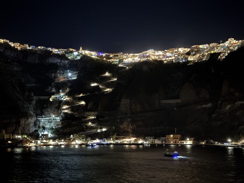 21時頃になると、真っ暗な空の下、港と街の素晴らしい夜景が見れて、サントリーニ島は最後の最後まで楽しめました。