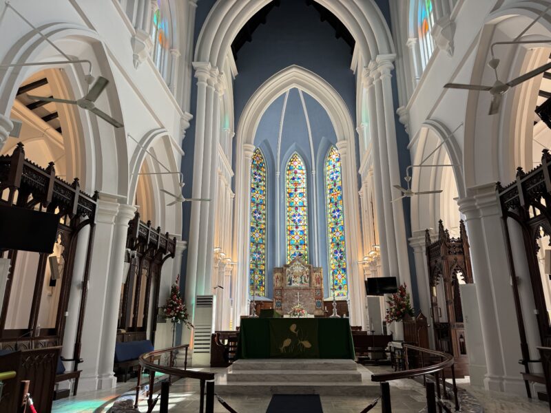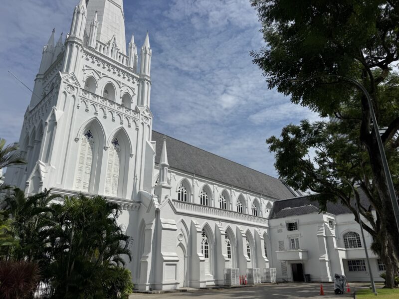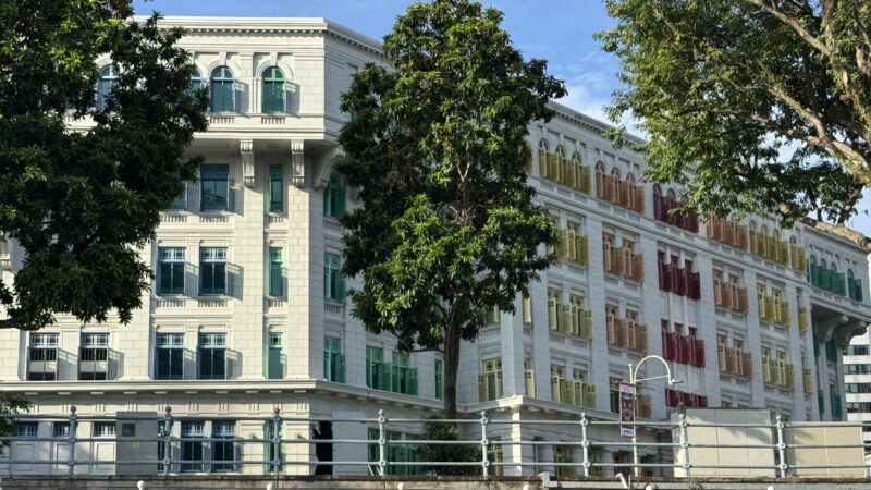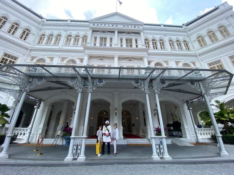 12時半になって、ホテルの隣にあるラッフルズ・ホテルを見に行きました。シンガポールの歴史・建築・社交文化を象徴するような名門ホテルです。