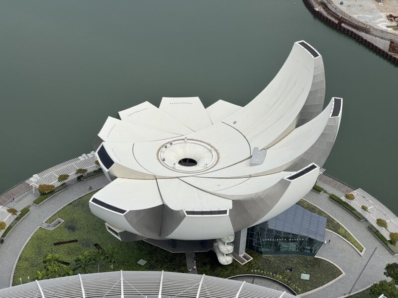 そのさらに右手手前には、印象的な形をしたアートサイエンス・ミュージアムが見えます。今日はここを見に行こうと最初は思っていたのですが・・・