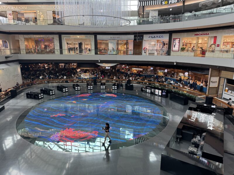 写真の左上隅がそのレストランですが、2階下のフードコート脇のデジタルライト・キャンバスがエリート会員特典で無料になるのでトライしてみました。