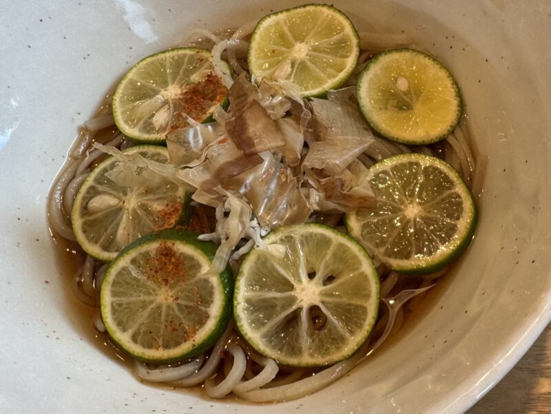 私は、スダチたっぷりの冷たい季節限定蕎麦にしてみました。