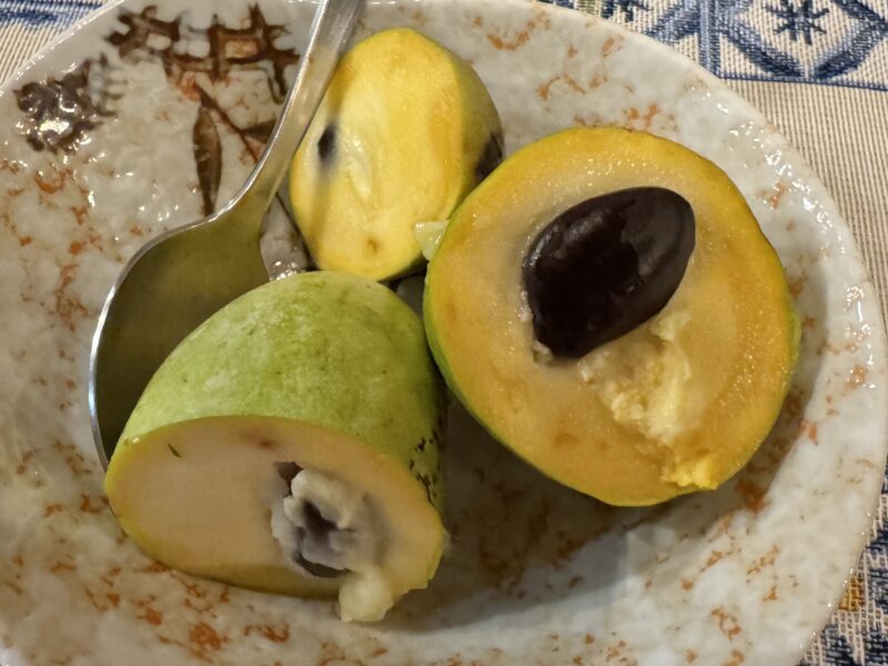 信州の限られたお店でしか売っているのを見かけないポポーを、今日はゲットできたのでデザートにいただきました。バナナとマンゴーとカスタードクリームを混ぜたような濃厚な味で、妻の子供の頃からのお気に入りです。