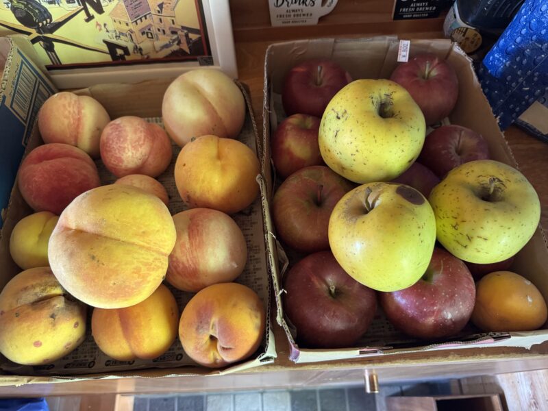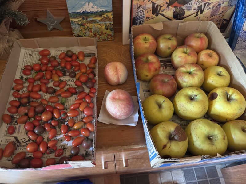 また農園に行って、桃とリンゴを1箱ずつ買い足しました。今日はたくさんおまけも付けてくれました。
