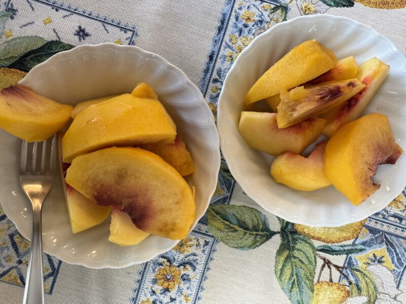 コテージに戻ってさっそく大きな黄桃を1個ずついただきました。