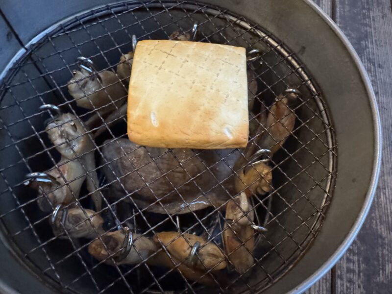 午後はまた燻製作りです。手羽先、豚肉ブロック、はんぺんなどをスモークして・・・