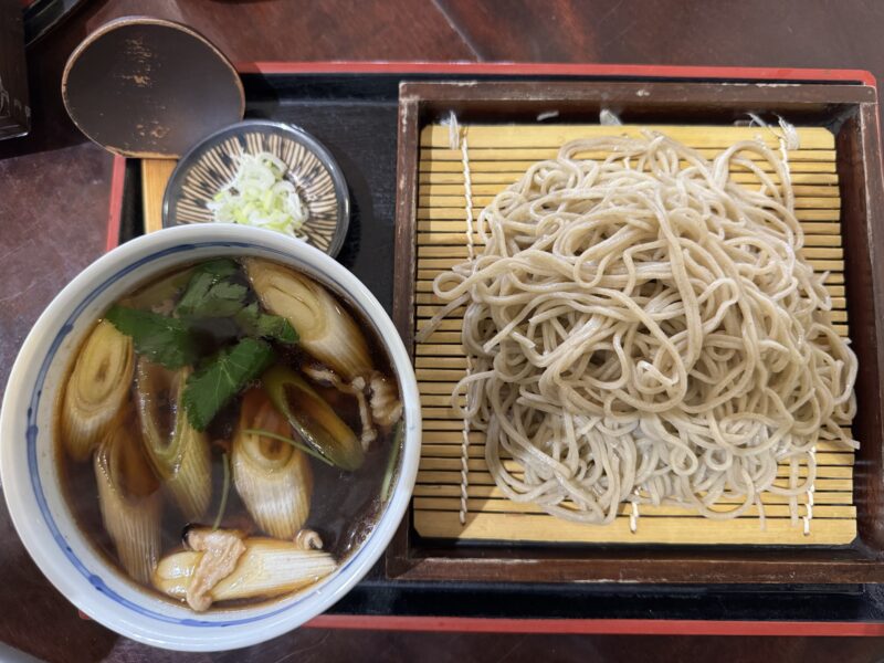 松本ICに向かう途中にあった手打蕎麦シマというお店で、最後のランチに私は豚ネギもり蕎麦をいただきました。