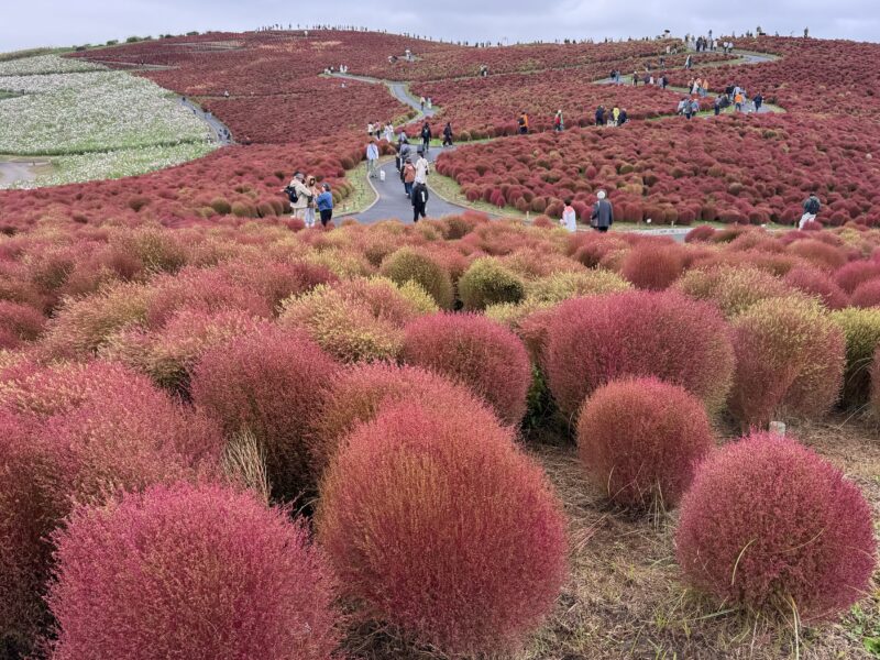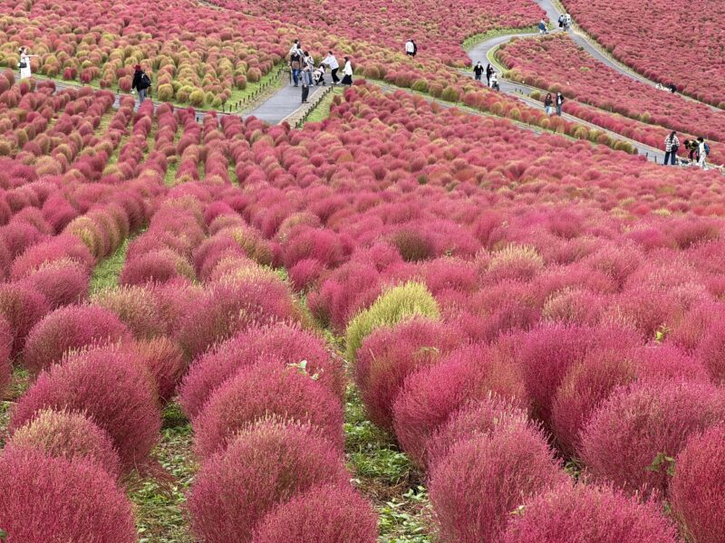丘全体に広がっているのは紅葉真っ盛りのコキアで・・・