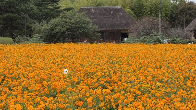 なぜかオレンジのコスモスだけは別の区画に分けて植えられていました。