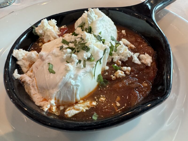 ちなみにレストランの朝食メニューで私の1番のお気に入りは、一昨日食べたシャクシュカです。トマトソースに卵を落としてタマネギなどと煮込んだ中東料理ですが、スパイスも絶妙で美味しいです。(振りかけてある白いのはフェタチーズです。)