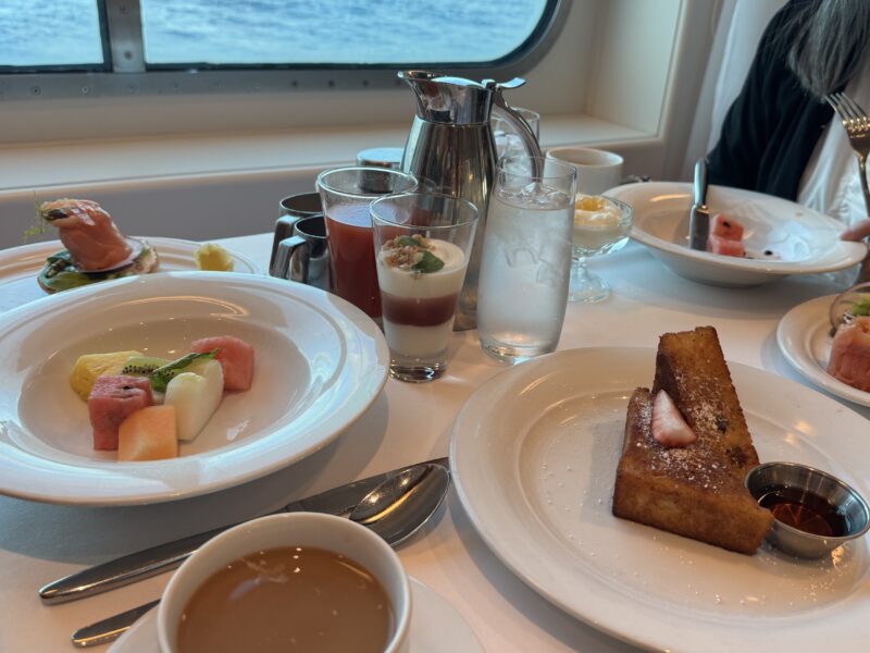 のんびりできる1日ですが、特に寝坊はせず、6時半に起きて7時に船尾のレストランに行きました。