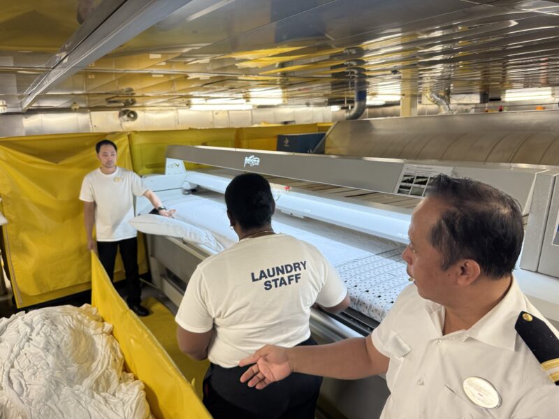 朝食後に特典の「船の舞台裏ツアー」に行くと、今日はとても大勢の参加者がいて、その中に秋田から来られた日本人のS夫妻もいました。