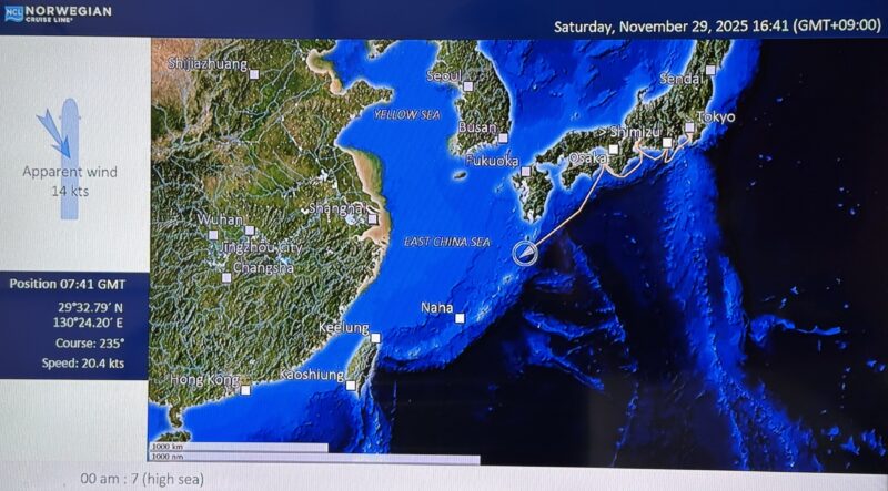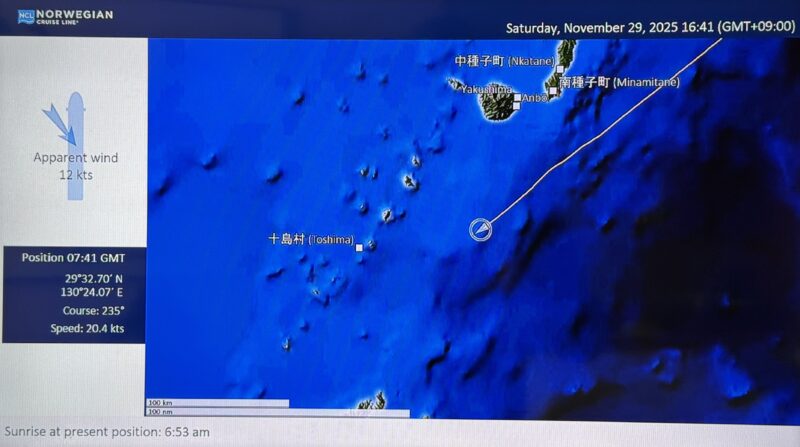 最初は徳之島だろうかと思ったのですが、船室のモニターで現在地を確認すると・・・