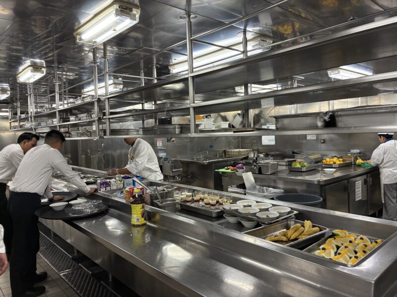 春のオセアニアクルーズの際にこの船の舞台裏ツアーには一度参加しているので、特に目新しいことはありませんでしたが、定番のギャレー(キッチン)・・・