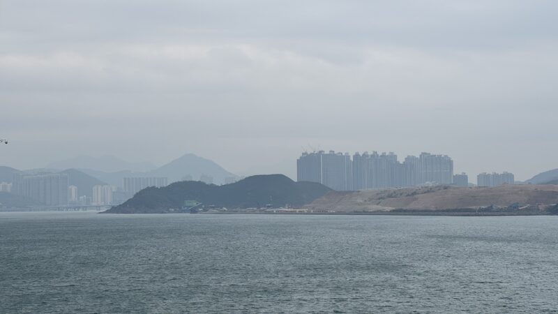 香港の中心部は高層ビルが密集していますが、そこから外へ外へと開発が広がっている様子で、入港する際にはまず土木工事現場が現れて、その奥にビル街が見えてきました。