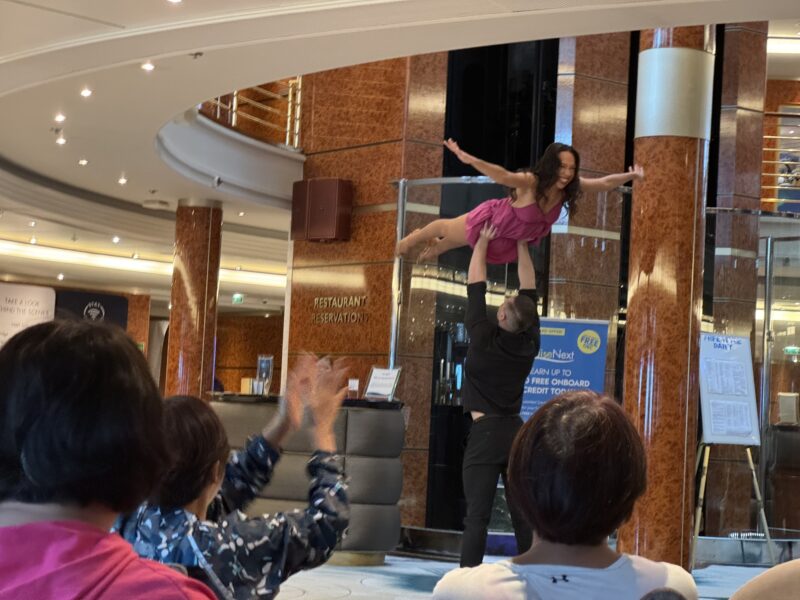 そのうちに突然、船のダンサーの2人がその場でパフォーマンスを始めてくれて、良い退屈しのぎになりました。