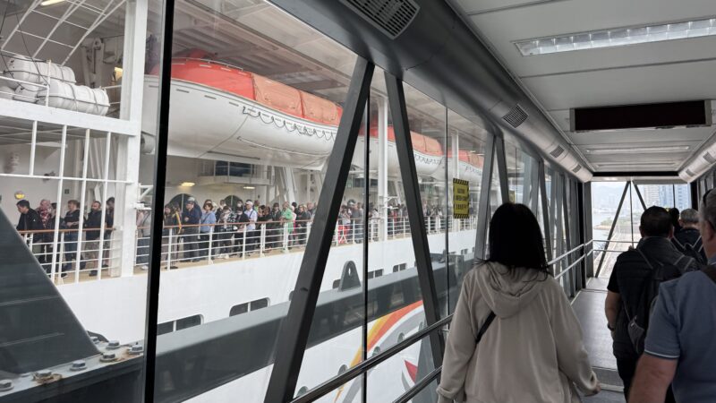 下船口は6階と決まったようで、そこに向かって移動し、長い下船待ち行列の階段部分で長く立ちん坊して待っていると、船客の数名を入国審査のために呼び出すアナウンスがありました。