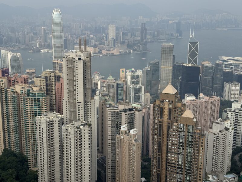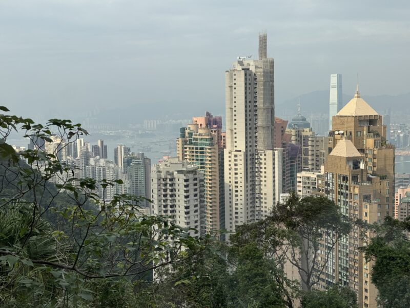 少しずつ高度を上げて周りのビルより高くなっていくのは、香港ならではの体験です。