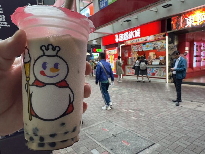 MRT銅鑼湾駅の近くでトラムを降りて、タピオカドリンクで一息つきました。