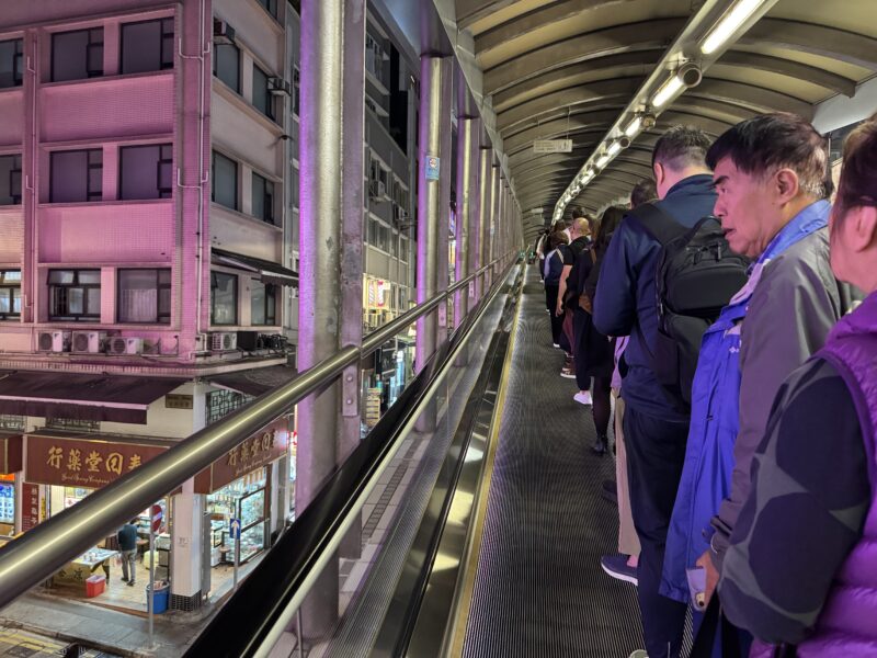 次に、歩いて中環に戻り、屋外では世界最長のヒルサイド・エスカレーターに乗りました。