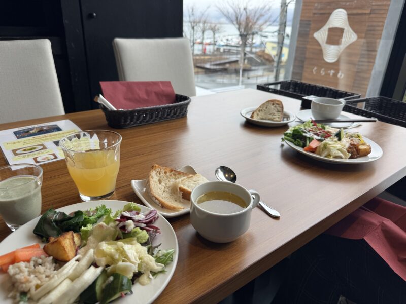 諏訪湖畔にある「くらすわ」というレストランでランチにしました。