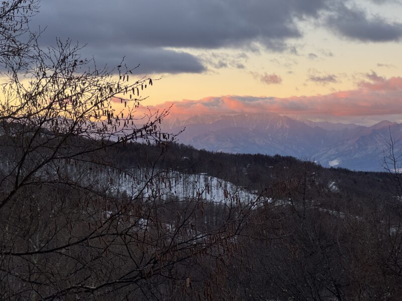 日が暮れる頃には、南アルプスにかかった雲が赤く染まってきれいでした。