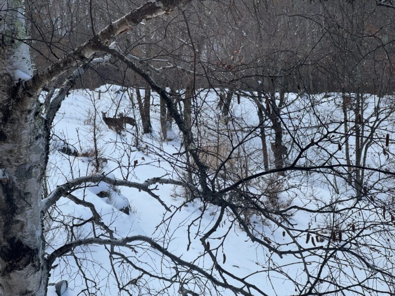 翌朝、鹿の群れがやって来て、こちらを警戒している様子でしたが、しばらく視界内にいてくれました。