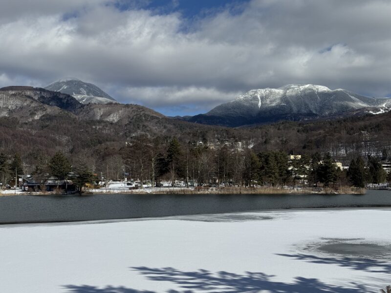 軽井沢やその西隣の御代田でカーリングをする際に常宿にしている女神湖畔のAMBIENT蓼科ホテルが1/20までリニューアル工事で休館中のため、今回は別の宿を利用しますが、湖には寄って一周歩きました。